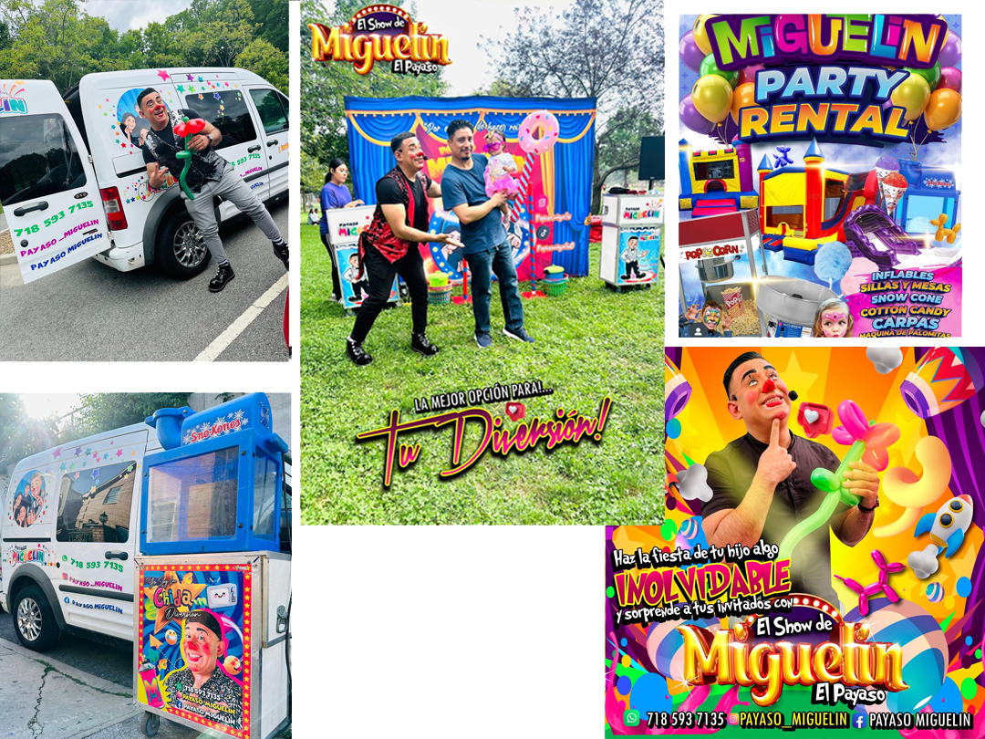 Arma tu paquete a la medida, contamos con todo lo necesario para que tu fiesta sea un exito, nuestro principal servicio es el Show de Miguelin, pero puede contratar un servicio integral que le ahorrara tiempo, dinero y esfuerzo. Prestamos nuestros servicios en los cinco condados de New York y Area Triestatal, llamanos para cotizar tu evento.